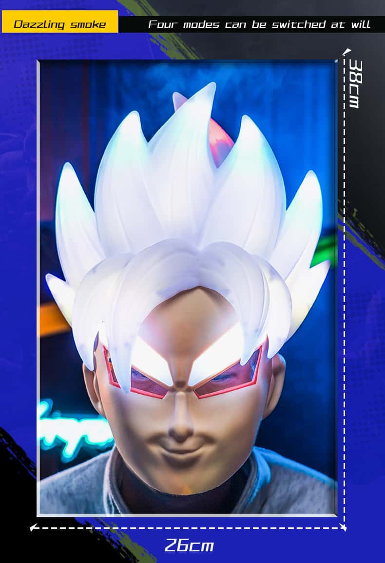 Rather than representing a character or narrative, the mask focuses on exaggerated silhouettes and energy-like structures, turning the wearer into a moving light form.