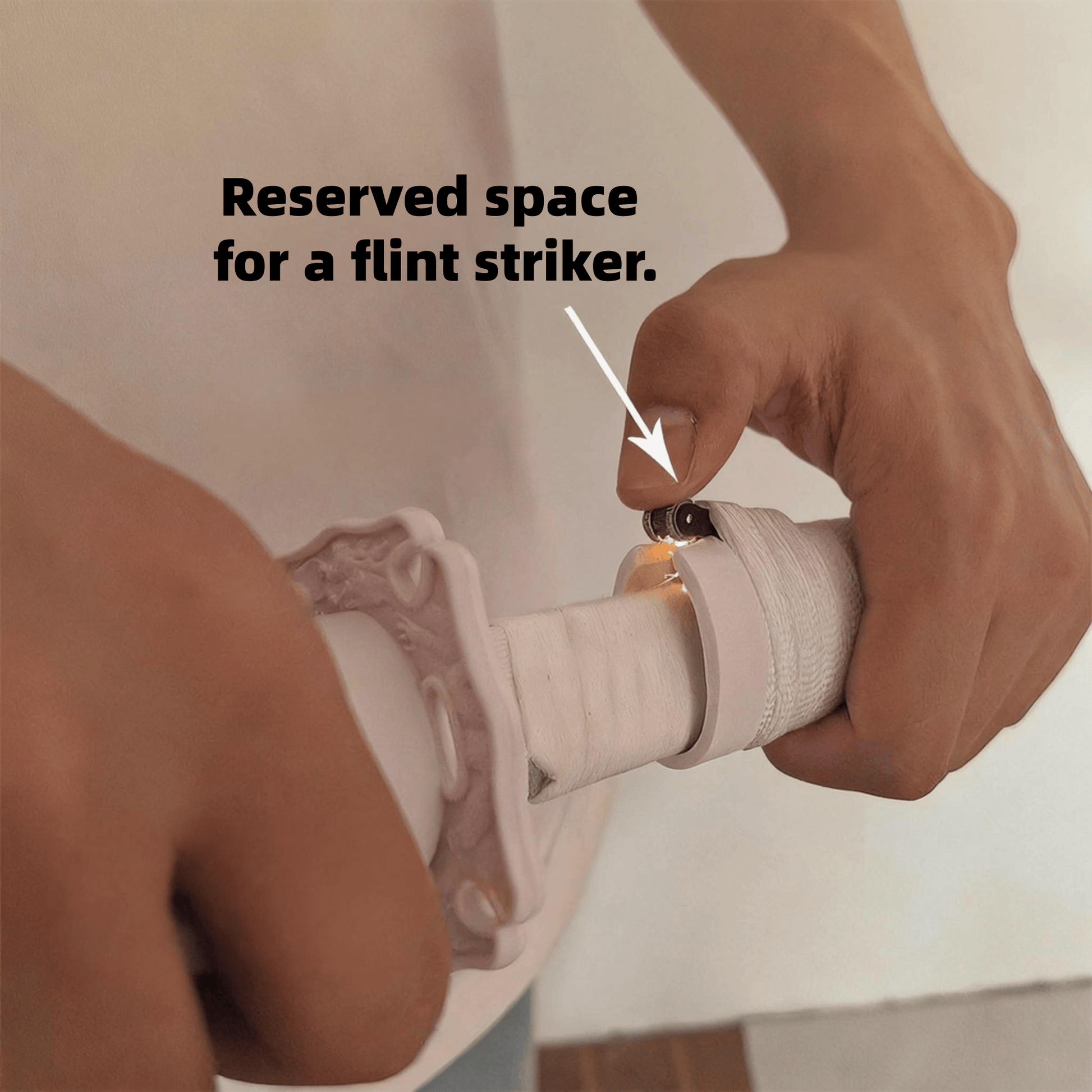 The flame effect is controlled and momentary, emphasizing visual impact rather than functionality. Each unit is produced in limited quantities and may vary slightly in appearance due to its experimental nature.